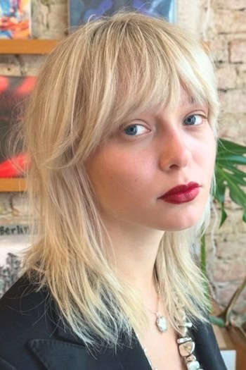 Blonde layered medium bob is a chic and versatile hairstyle that blends effortless style with modern flair. Falling around the shoulders, the layers add texture, movement, and volume while giving the hair a lively, dynamic look. Blonde tones brighten the overall style which creates dimension and a sun-kissed effect.