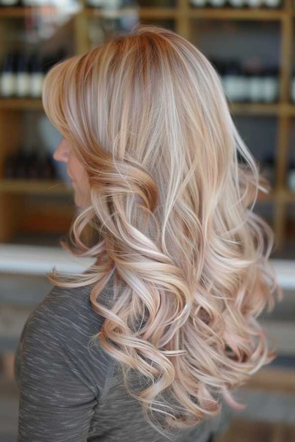 15. Champagne Blonde Hair with Rose Gold Lowlights