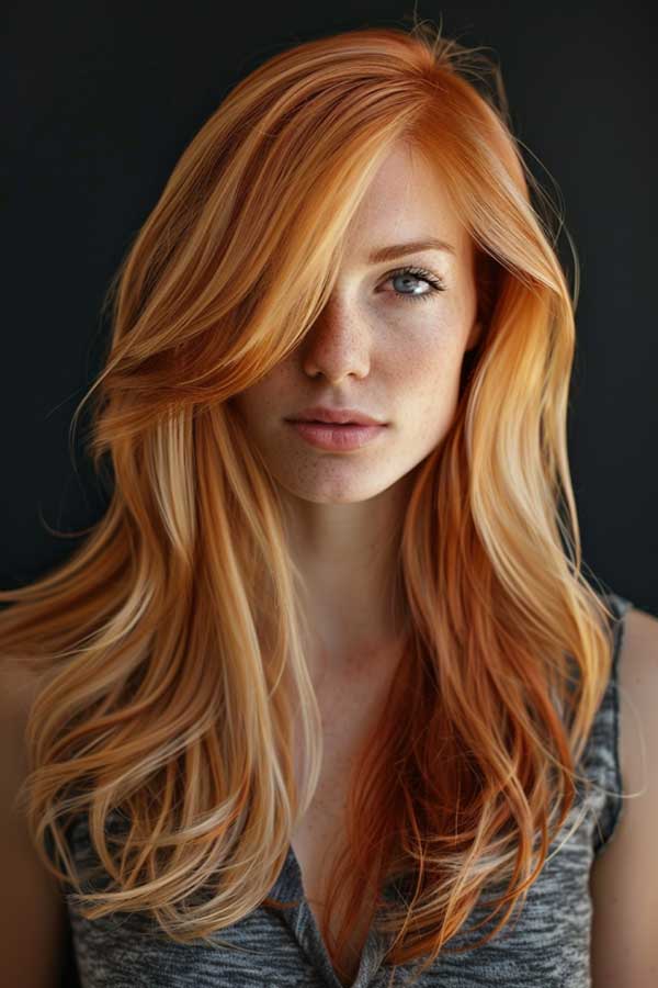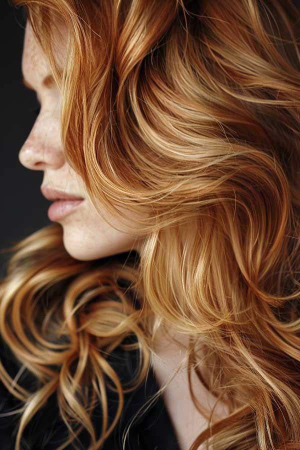 Strawberry blonde hair with copper lowlights creates a vibrant, fiery blend full of warmth and personality. The soft, rosy base is enhanced by rich copper tones that add depth, shine, and a touch of boldness. This combination brings out natural red undertones and flatters fair to medium complexions beautifully. It’s a stunning choice for adding dimension and vibrancy while keeping the overall look soft, romantic, and effortlessly eye-catching.
