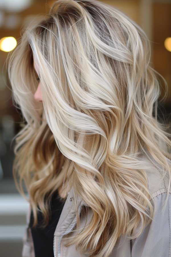 Light blonde hair with dark blonde lowlights creates a soft, natural contrast that adds subtle depth and dimension. The darker blonde tones blend seamlessly with the lighter base, giving the hair a more textured, voluminous appearance without harsh lines. This look is perfect for maintaining a bright blonde feel while introducing warmth and movement. It’s an easy, low-maintenance option for those wanting a more lived-in, sun-kissed style year-round.
