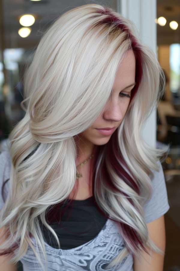 14. Platinum Blonde Hair with Burgundy Lowlights