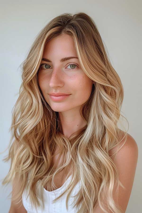 1. Sandy Blonde Hair with Caramel Lowlights