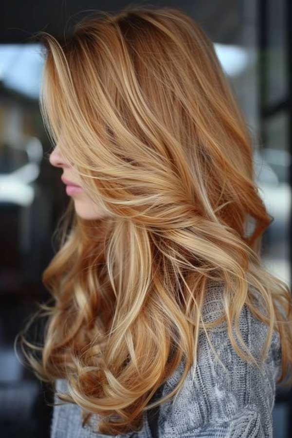 13. Warm Blonde Hair with Cinnamon Lowlights