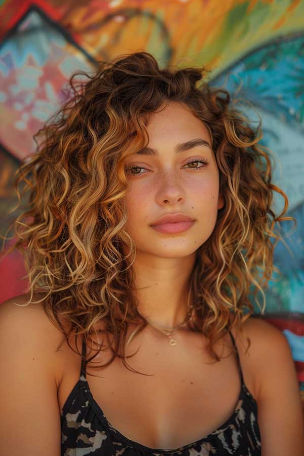9. Caramel Balayage on Curly Hair