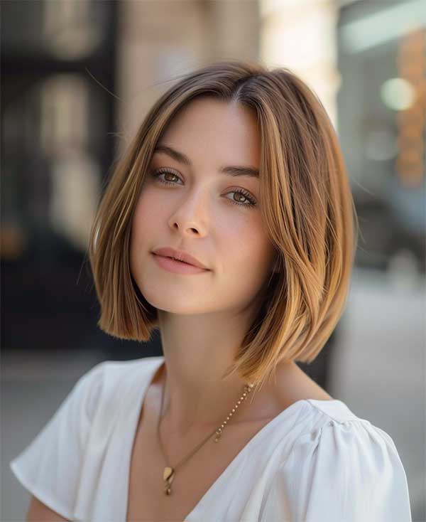 Soft caramel balayage bob is a sleek, modern hairstyle that blends warm caramel highlights with a sharp bob cut. The highlights add depth and movement, creating a natural, sun-kissed effect. This versatile style works beautifully with both straight and wavy hair, offering a chic and low-maintenance look. The caramel tones infuse warmth and texture, making it an effortlessly stylish choice for anyone seeking a trendy yet timeless vibe.