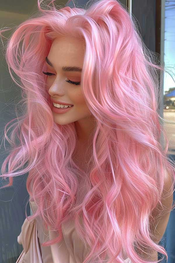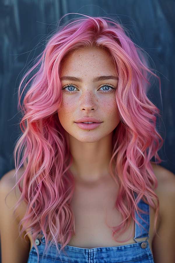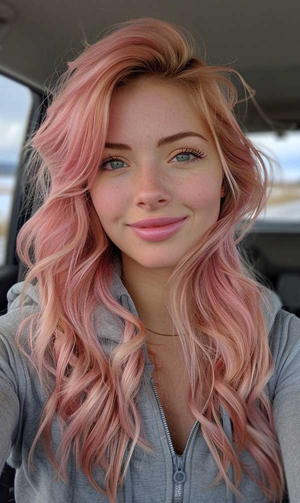 Soft pink long wavy hair creates a dreamy, romantic look that’s both feminine and trendy. The gentle waves add natural movement and texture which enhances the softness of the pastel pink shade. This style works beautifully for those who want a subtle yet eye-catching color that feels playful and elegant. Soft pink waves bring a fresh, youthful vibe perfect for any occasion whether worn down or styled loosely.