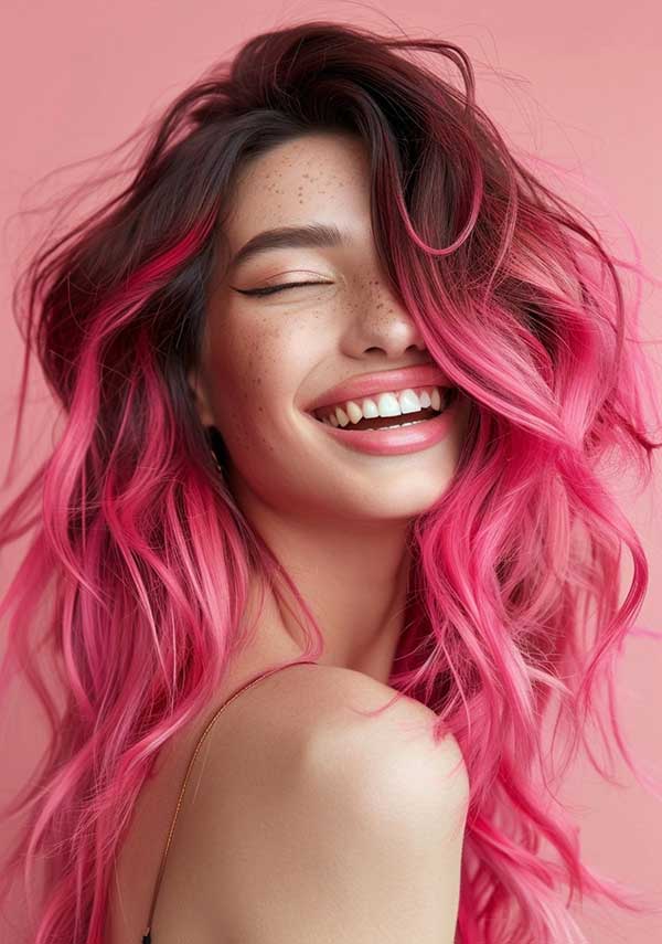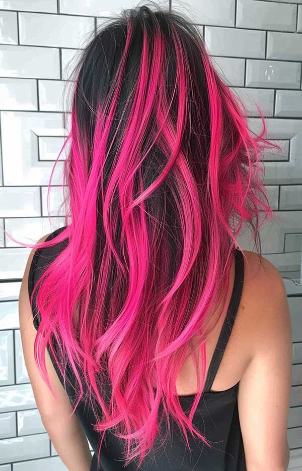 Bright pink highlights on brunettes create a striking contrast that instantly livens up dark hair. These vivid pops of color add fun and personality without fully committing to a full pink dye. The bright pink strands stand out against rich brown tones, giving a bold, edgy vibe while still maintaining a natural base.