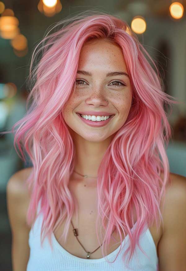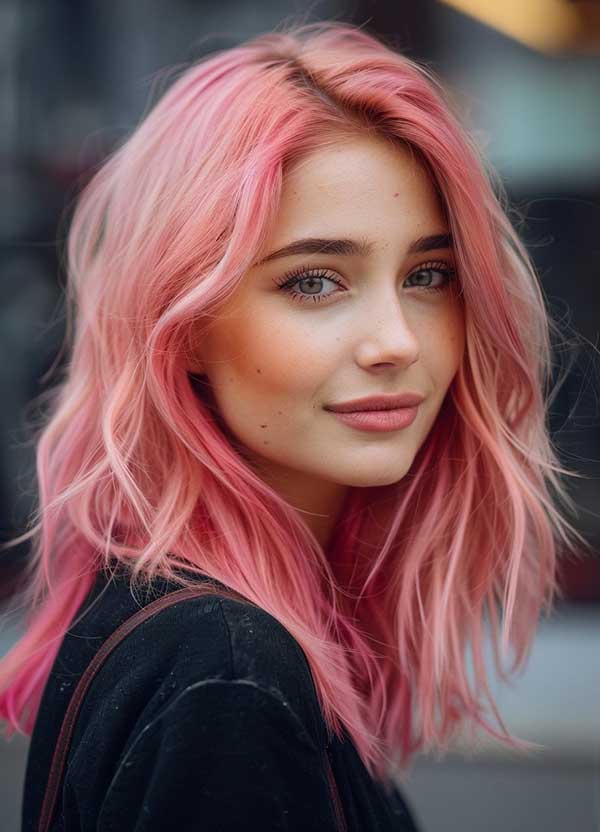Pink hair is an eye-catching choice that instantly stands out. From dreamy pastel tones to bold hot pink or rich magenta, this color offers endless possibilities to match your style. Soft pink shades bring a romantic, whimsical feel while brighter, neon hues give off bold and confident energy. It’s a versatile option that works for many aesthetics, whether you’re aiming for edgy, chic, or sweet and playful. Maintaining pink hair requires some commitment, as the color tends to fade faster than darker shades. Using color-safe shampoo, cold water rinses, and regular touch-ups will help keep it fresh. Pre-lightening the hair is often necessary, especially if starting from a darker base, to ensure the pink shows up vividly.