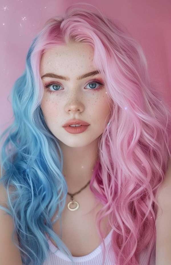 Pastel pink and blue ombre creates a soft, whimsical blend of two dreamy colors that fade seamlessly into each other. This gentle gradient is an elegant look which is perfect for those who want a unique and colorful style without overwhelming brightness.