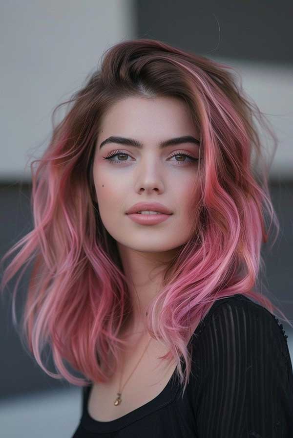 Pink balayage on long hair creates a stunning, dimensional look by blending vibrant pink tones seamlessly into natural or darker roots. This technique adds depth and movement while giving long locks a playful yet sophisticated vibe. Pink balayage enhances the length and texture of the hair while making a fashionable statement.