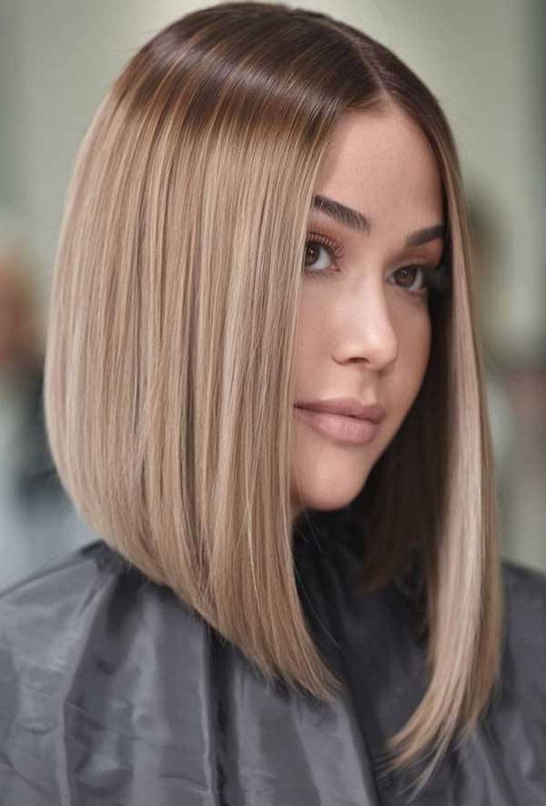 The shoulder-length A-line bob is an angled cut that’s shorter in the back and gradually longer in the front. This sleek shape adds structure and beautifully frames the face while highlighting the jawline and cheekbones. It works well with straight or slightly wavy hair and requires minimal styling to look polished.