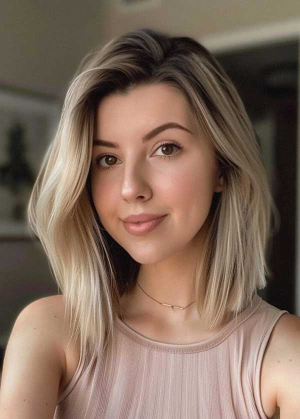 A straight shoulder-length bob is a sleek hairstyle that is a clean and structured look. Its even length creates a sharp silhouette that flatters most face shapes and works well for all hair types. This cut is perfect for both professional and casual settings. The straight bob is a modern, polished finish with minimal styling needed whether you wear it with a center or side part.