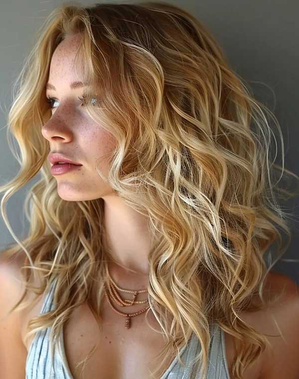 Medium beachy waves shag is a relaxed, textured hairstyle that combines the carefree vibe of beach waves with shaggy layers. The waves add natural movement, while the layered cut creates volume and dimension. This style works best on wavy or straight hair, offering a laid-back, sun-kissed look that feels effortless yet stylish. Perfect for those seeking a low-maintenance cut with a chic, boho-inspired finish, it’s ideal for everyday wear.
