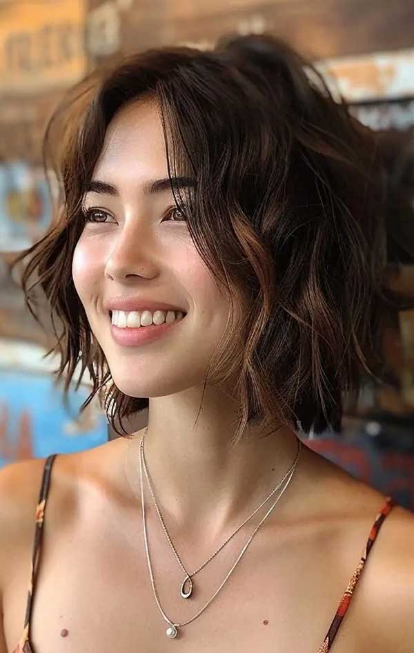 Textured medium bob shag is a chic, modern haircut that blends the sharpness of a bob with the softness of shaggy layers. Featuring tousled ends, subtle volume, and often paired with bangs, it adds movement and edge to the classic bob shape.