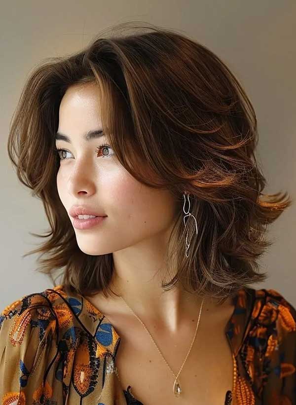 Medium shag haircut is a trendy, low-maintenance style that offers texture, volume, and a laid-back vibe. Defined by layered cuts, feathered ends, and often paired with bangs or curtain fringes, this haircut brings movement and shape to the hair without requiring much daily effort. Originally a 1970s classic, the shag has made a major comeback, blending retro charm with modern edge. Its medium length makes it versatile—long enough to style but short enough to stay easy. The layers work beautifully on all hair types, from fine to thick, enhancing natural waves or curls and adding body where needed. This cut frames the face effortlessly, making it flattering for a variety of face shapes. Whether styled sleek, tousled, or air-dried, the medium shag looks effortlessly cool and grows out gracefully. It also pairs well with color treatments, from subtle balayage to bold highlights, further enhancing its textured appeal. The result is a chic, undone look that feels both fresh and expressive. Perfect for those who want a haircut with personality, the medium shag offers a modern, relaxed approach to everyday hair styling.