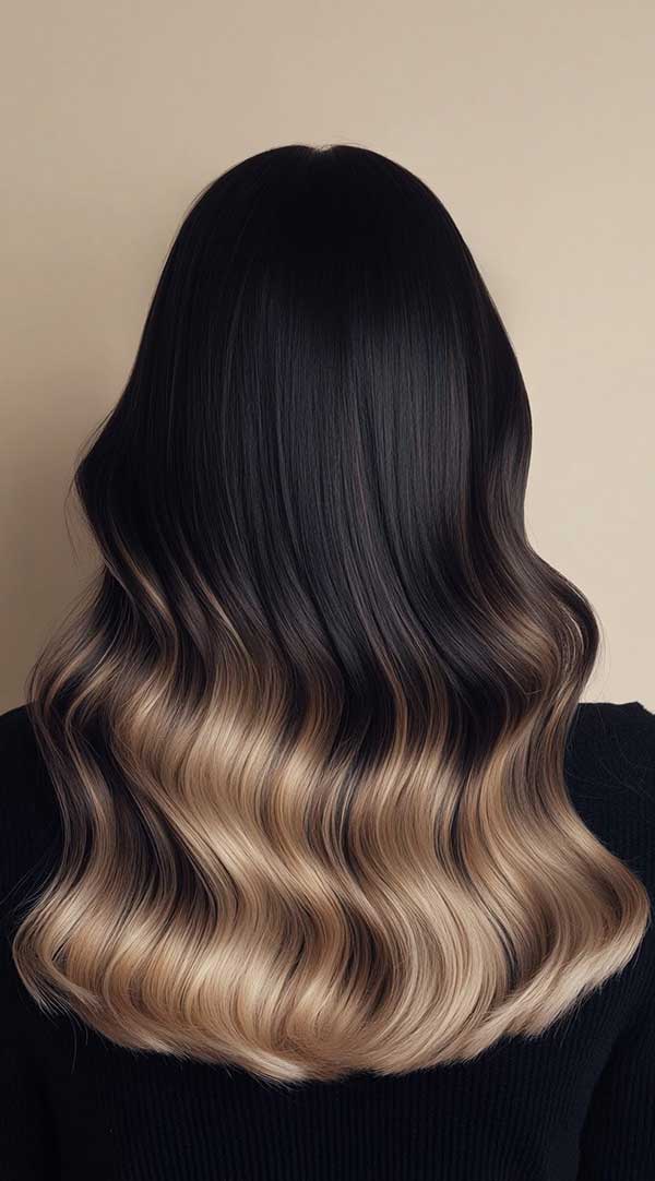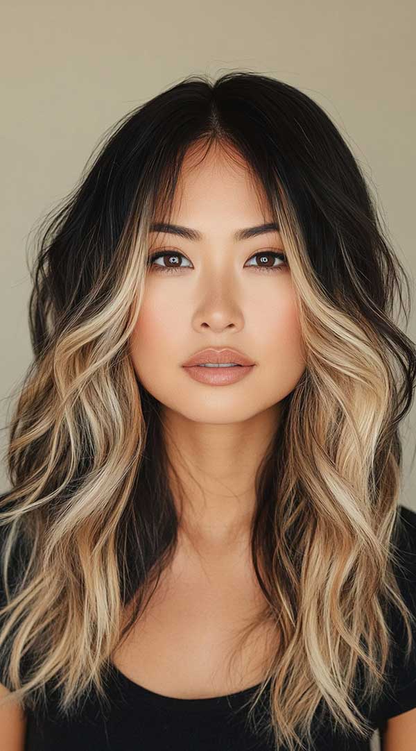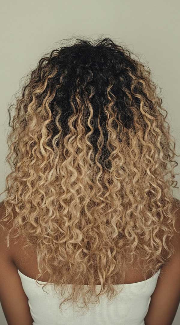 Honey blonde waves with a dark base create a stunning contrast, offering a natural, sun-kissed look. The deep roots add richness and depth, while the honey blonde waves bring warmth and dimension to the hair. This combination enhances movement, especially in textured or wavy hair, creating a dynamic, radiant effect. It’s a low-maintenance yet striking style that suits all hair types, providing a chic and effortless finish.