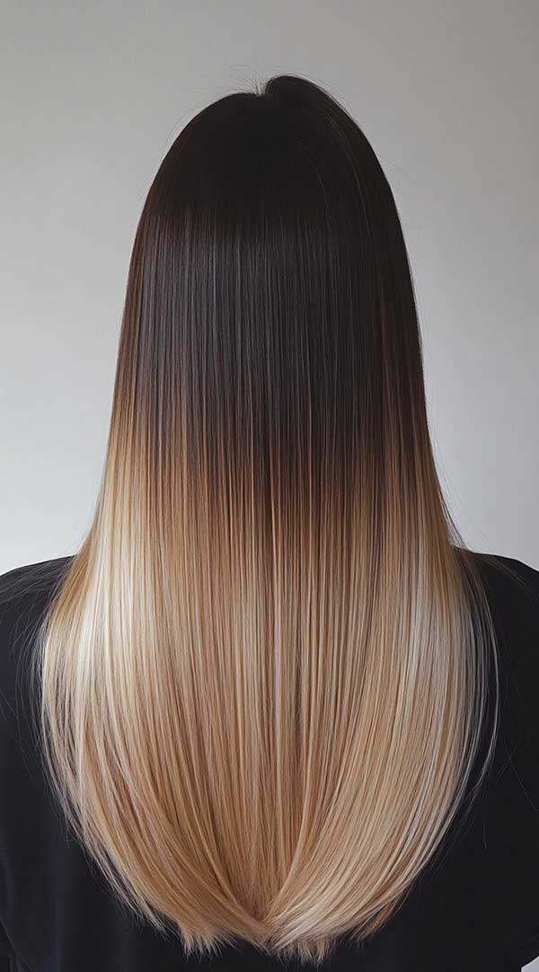 Silky straight honey blonde ombré creates a sleek, elegant look with a smooth transition from dark roots to light honey blonde ends. The ombré effect adds depth and dimension, while the straight hair enhances the color’s vibrancy. This style exudes sophistication and shine, perfect for those seeking a low-maintenance yet polished appearance. The honey blonde tones beautifully brighten the hair, offering a radiant, sun-kissed finish on straight locks.