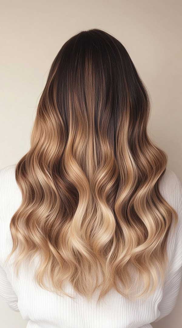1. Honey Blonde Waves with a Dark Base