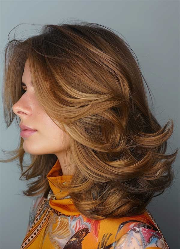 A medium haircut with dimensional layers adds depth and richness by combining layers of varying lengths and textures. Perfect for all hair types, dimensional layers give a multi-tonal effect that adds interest and softness. It’s an ideal choice for anyone looking to elevate a classic medium-length cut with a vibrant, dynamic style.