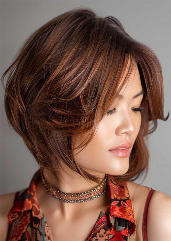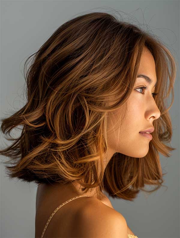 Medium layered bob haircut is a chic, modern twist on the classic bob which adds texture, movement, and volume. This style works beautifully with straight, wavy, or slightly curly hair and flatters most face shapes. It’s low-maintenance yet polished, making it a go-to choice for anyone seeking a fresh, stylish, and versatile everyday haircut.