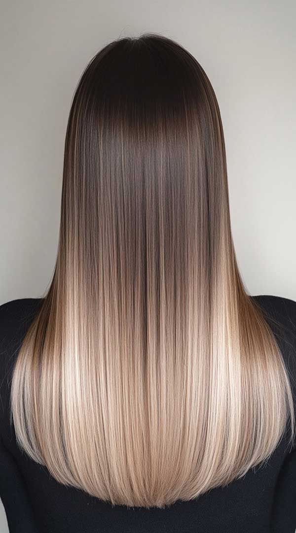 Ash blonde balayage on straight brown hair creates a sleek, modern look with a cool, sophisticated tone. This technique blends ashy blonde hues seamlessly into the brown base, adding depth and dimension while maintaining a natural transition. The contrast enhances shine and smoothness, giving straight hair a polished, effortless style. Low-maintenance yet striking, ash blonde balayage is perfect for those seeking a chic, refined, and contemporary hair transformation.