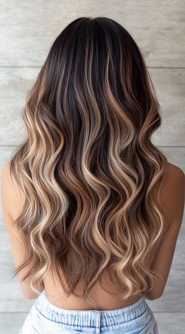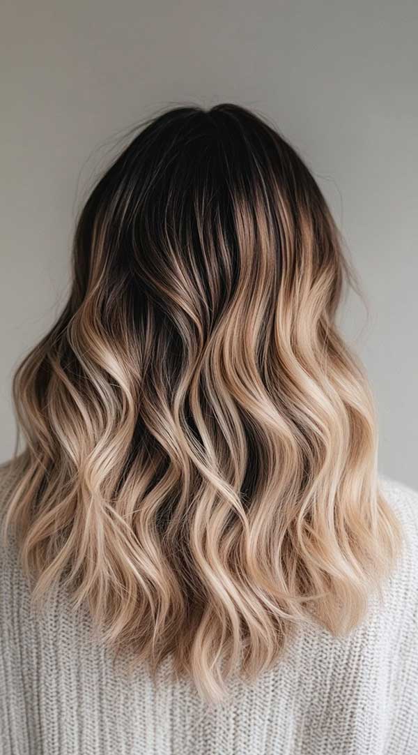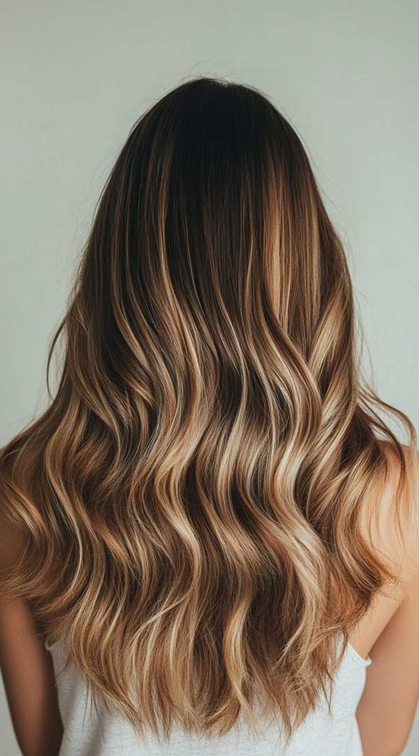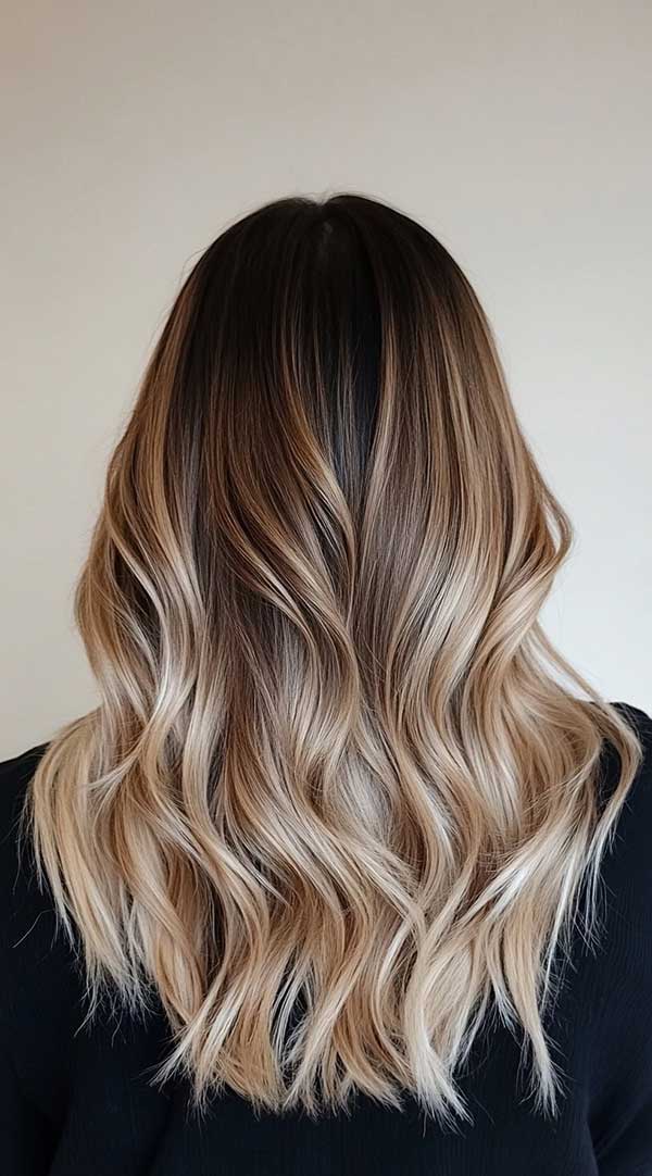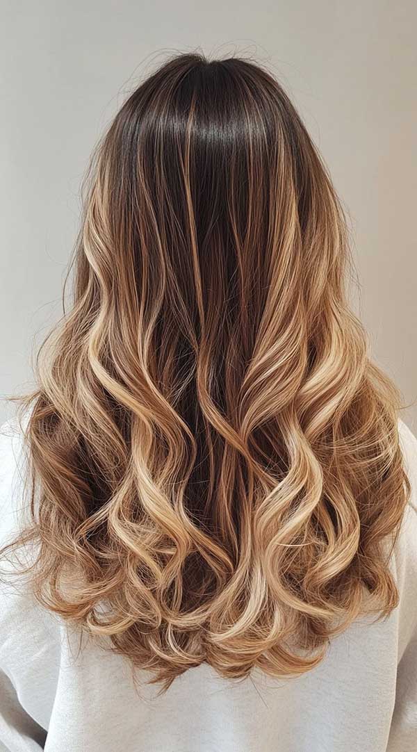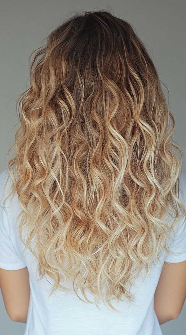 Wavy blonde balayage on brown hair creates a stunning, sun-kissed effect with natural depth and dimension. This technique blends hand-painted blonde highlights seamlessly into brown hair, enhancing waves for a soft, effortless look. The gradual transition from brown to blonde adds brightness without harsh lines, making it a low-maintenance yet stylish choice. Perfect for all shades of brown, wavy blonde balayage offers a timeless, beachy, and effortlessly chic appearance.