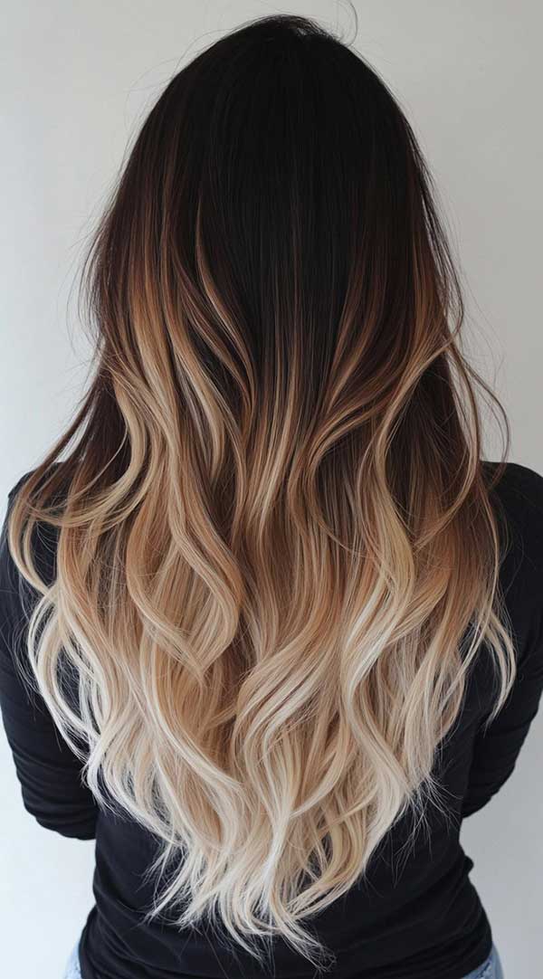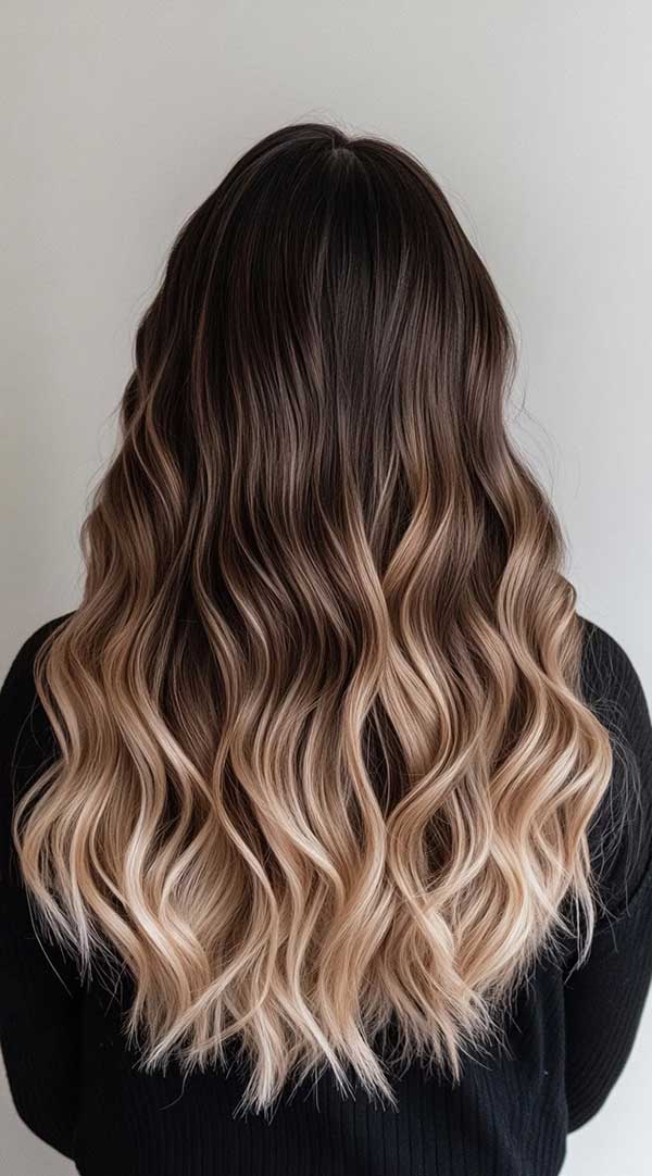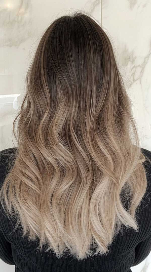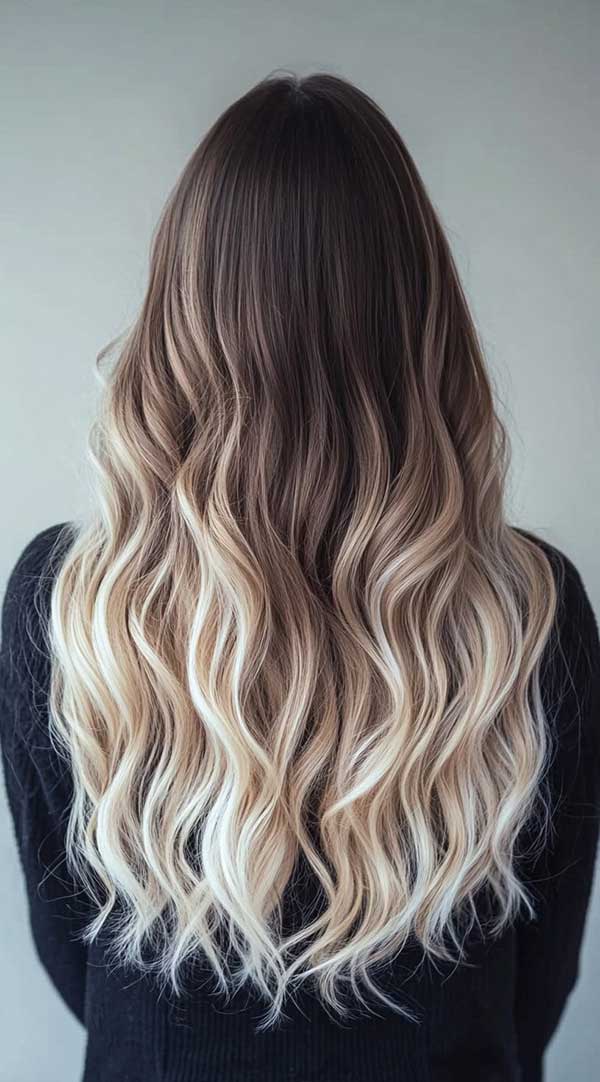 7. Dark Chocolate to Icy Blonde Ombre Balayage