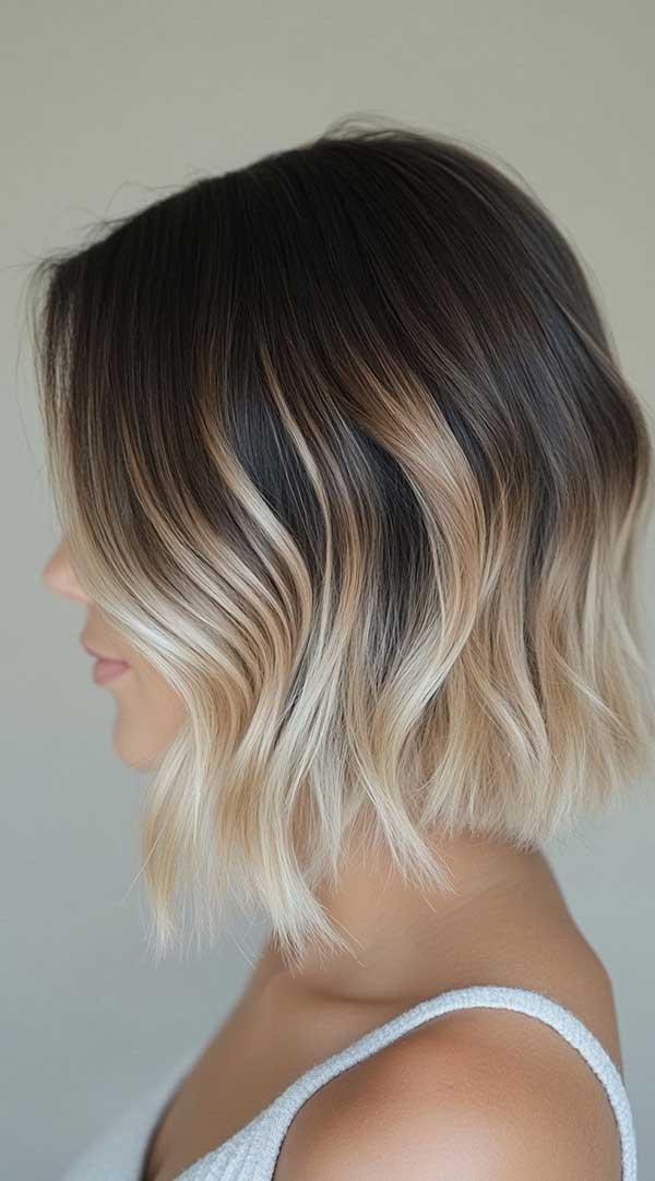 Icy blonde balayage bob is a chic, modern hairstyle that combines cool, platinum tones with a soft, blended effect. The balayage technique creates a seamless transition from darker roots to icy blonde ends, adding depth and dimension. This sleek, low-maintenance style enhances movement and shine, making it perfect for a fresh, edgy look. Ideal for all textures, an icy blonde balayage bob exudes sophistication with a bold, trendy finish.