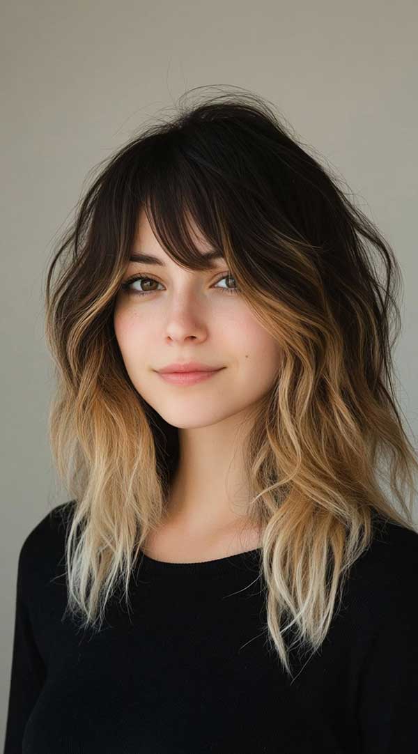 Textured shag with honey blonde balayage blends effortless volume with warm, golden dimension. The layered cut adds movement and texture, while hand-painted honey blonde highlights create a soft, sun-kissed effect. This balayage technique ensures a seamless, low-maintenance transition that grows out beautifully. Perfect for a relaxed yet stylish look, the textured shag with honey blonde balayage offers a modern, lived-in feel with a touch of radiant warmth.