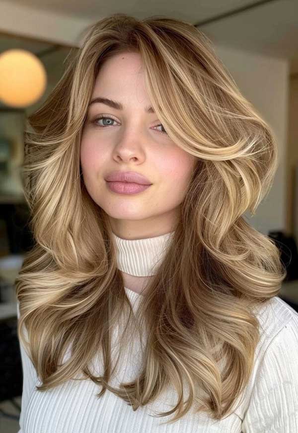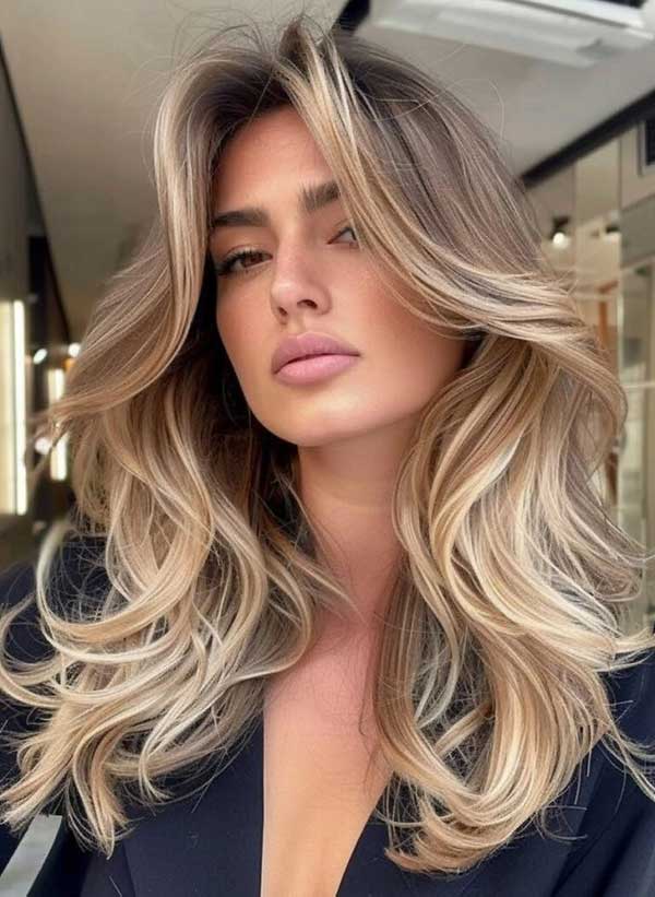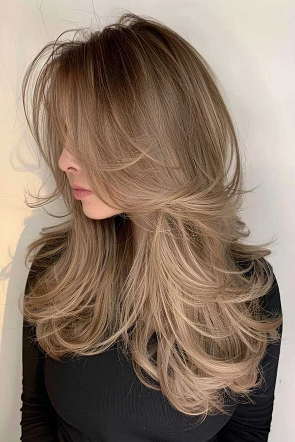 3. Long Butterfly Haircut with Beige Blonde Balayage