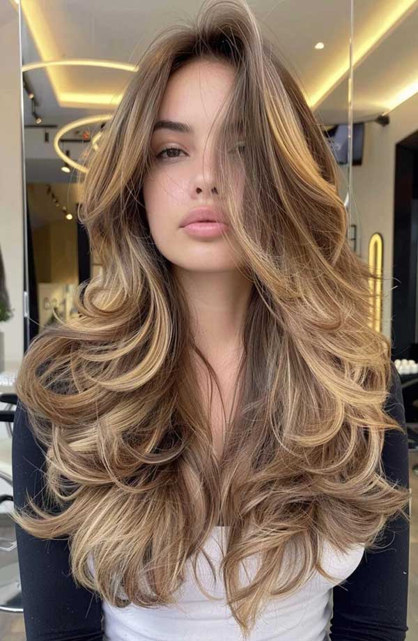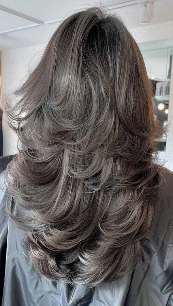 Long layered butterfly haircut is a flowing, voluminous style that combines elegance with modern texture. Featuring shorter layers around the crown and face, it adds lift and shape while maintaining length through the back. This cut creates a soft cascading effect that enhances movement and body.