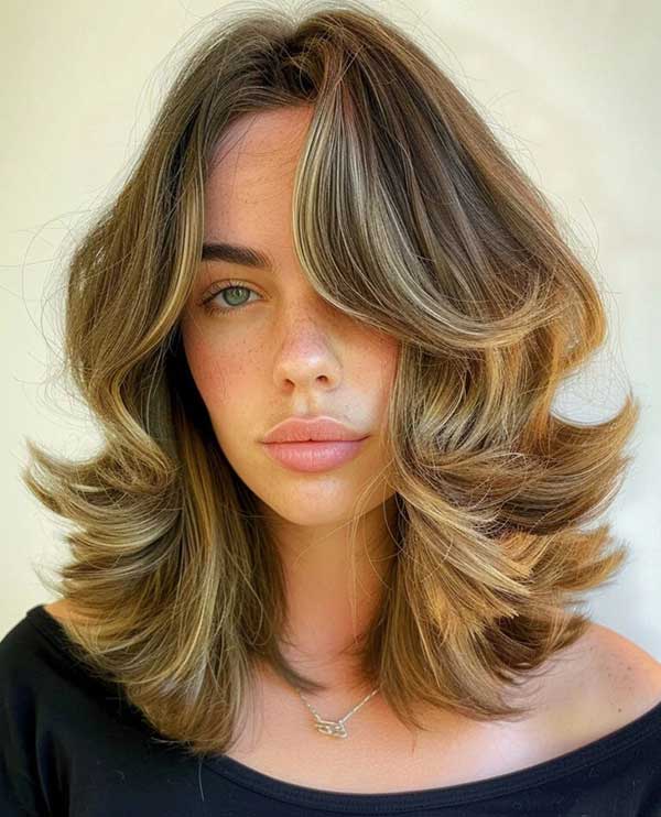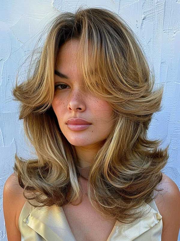 The butterfly haircut with face-framing layers is a flattering style that adds shape and softness to your look. The shorter layers around the face draw attention to your features while longer layers in the back create natural volume and movement.
