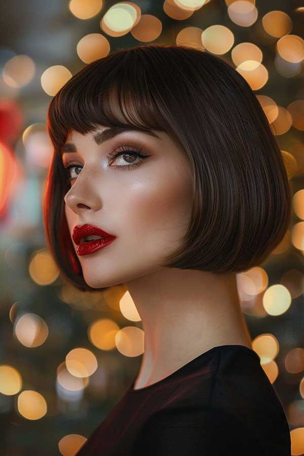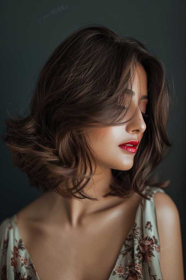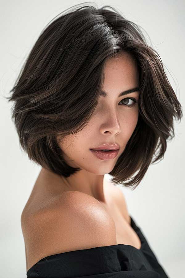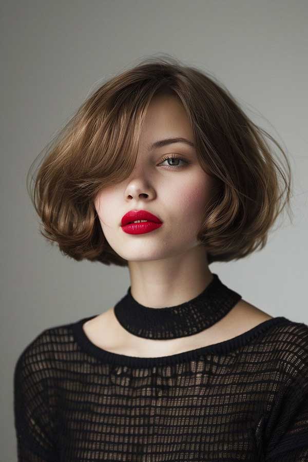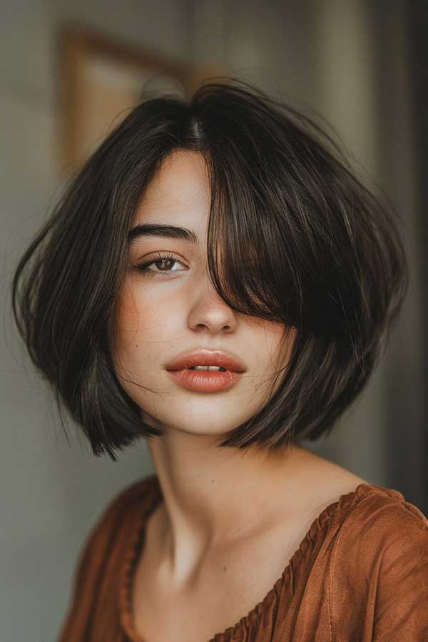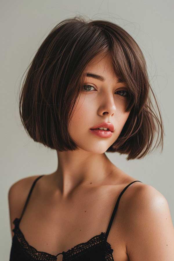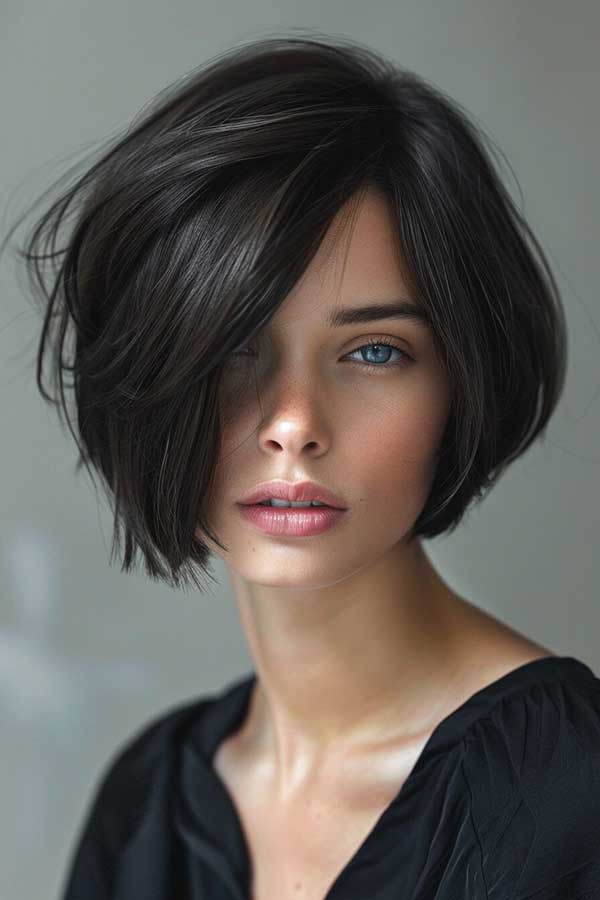 Short layered bob with side bangs is a chic and versatile hairstyle that adds volume and movement. The layered cut creates texture and fullness, making the hair appear thicker, while the side bangs frame the face beautifully for a soft, flattering look. This stylish bob works well with various hair types and can be worn sleek or tousled. Effortlessly modern and low-maintenance, it’s perfect for a fresh, youthful, and sophisticated appearance.
