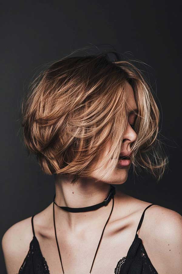 Layered short hairstyle is a chic and versatile choice that adds volume, texture, and movement. The layers create depth, making fine or thin hair appear fuller and more dynamic. This style can be worn sleek, tousled, or wavy for a fresh, modern look. Flattering for various face shapes, it’s easy to maintain and perfect for those seeking a stylish, effortless haircut with added body and dimension.