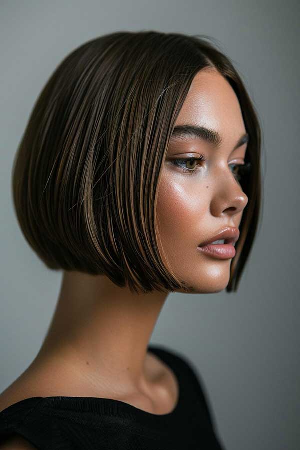 Short bob with sliced layers is a chic and modern hairstyle that adds movement and dimension. The sliced layers create a lightweight, seamless look, enhancing volume without bulk. This versatile cut works well for various hair textures, offering an effortless yet polished appearance. Whether styled sleek or tousled for added texture, this bob is a stylish, low-maintenance choice that provides a fresh, contemporary, and flattering look for any occasion.