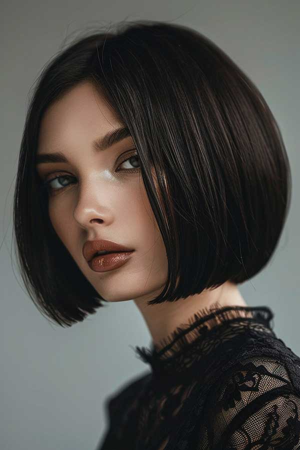 Sleek blunt bob with a center part is a timeless and sophisticated hairstyle that exudes elegance and confidence. The blunt cut creates a sharp, polished look, making the hair appear thicker and healthier. The center part enhances symmetry, framing the face beautifully. This versatile style works well for various face shapes and is easy to maintain. Perfect for a chic, modern, and effortlessly polished appearance for any occasion.