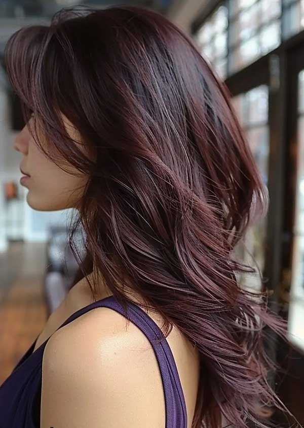 Chocolate raspberry balayage combines rich chocolate brown hues with vibrant raspberry highlights, creating a stunning contrast and depth. This technique adds warmth and dimension, with the deep chocolate base perfectly complementing the bold raspberry tones. The result is a unique, striking look that’s both sophisticated and playful. Ideal for those wanting a bold, yet natural style, chocolate raspberry balayage is low-maintenance and enhances texture, giving hair a luxurious, multi-dimensional finish.