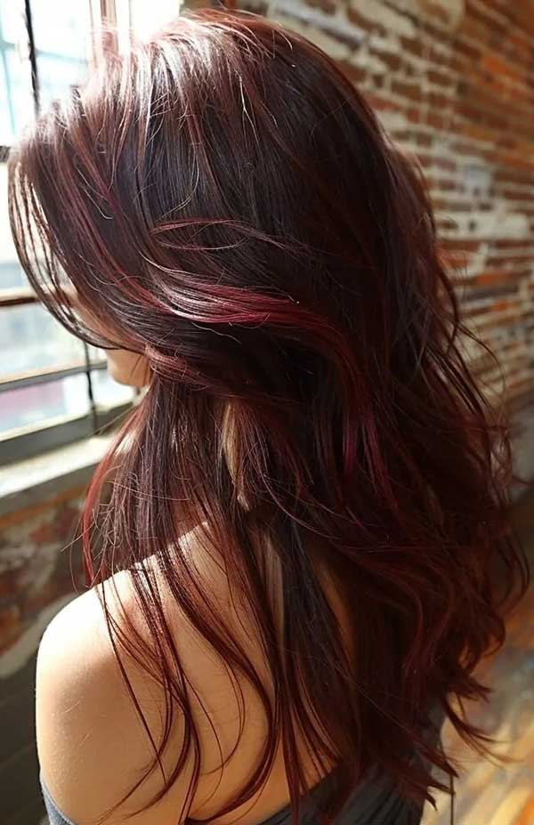 17. Chocolate Cherry Balayage on Dark Brunette Hair