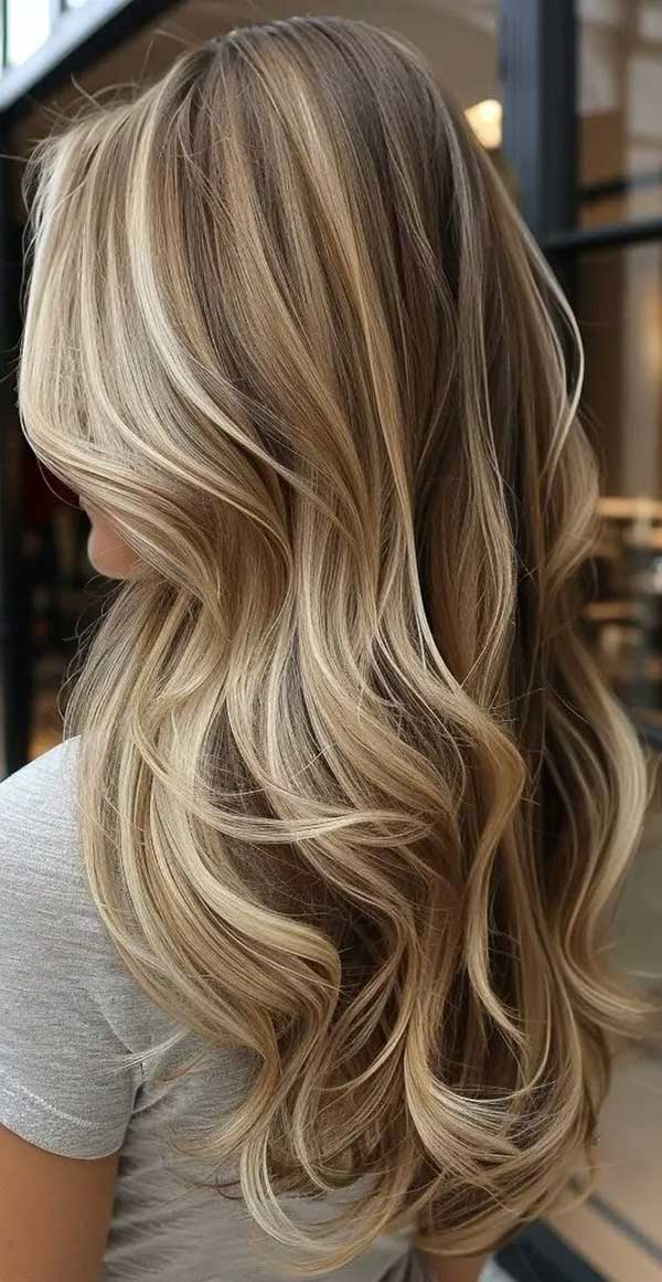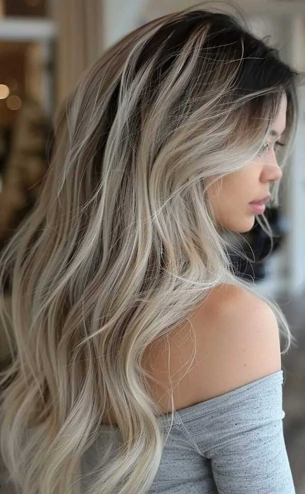 Pearl blonde balayage on dirty blonde hair blends soft, cool-toned pearl highlights with the natural warmth of dirty blonde base. This technique creates a seamless transition from darker roots to light, shimmering ends, adding dimension and a fresh, radiant glow. The cool pearl tones brighten the hair, while maintaining a natural, sun-kissed effect. Ideal for those seeking a chic, low-maintenance style, pearl blonde balayage offers a sophisticated, modern look.