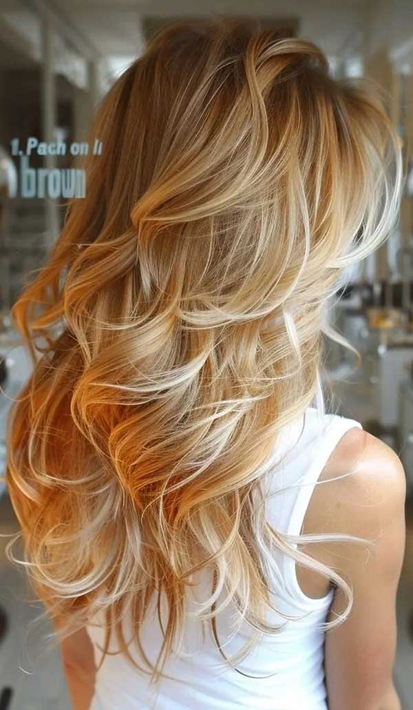 Bronzed balayage on golden blonde hair blends rich, warm bronze highlights with a sun-kissed golden blonde base, creating a stunning, dimensional look. The technique smoothly transitions from lighter roots to deeper, bronzed ends, adding depth and warmth to the hair. This combination enhances texture and movement, offering a natural, radiant finish. Perfect for those seeking a low-maintenance, sophisticated style, bronzed balayage on golden blonde hair delivers a glowing, effortless effect.