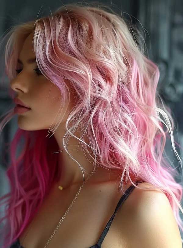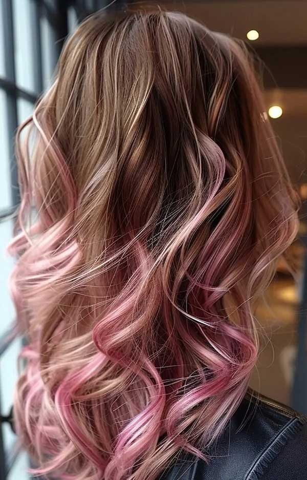 Pink balayage on blonde hair creates a vibrant, playful contrast with soft, pastel pink highlights blending seamlessly into light blonde strands. This technique adds a pop of color while maintaining a natural, sun-kissed effect. The pink tones bring a fresh, youthful vibe, enhancing the blonde base with a fun twist. Perfect for those wanting a bold yet wearable style, pink balayage on blonde hair is chic, low-maintenance, and full of personality.