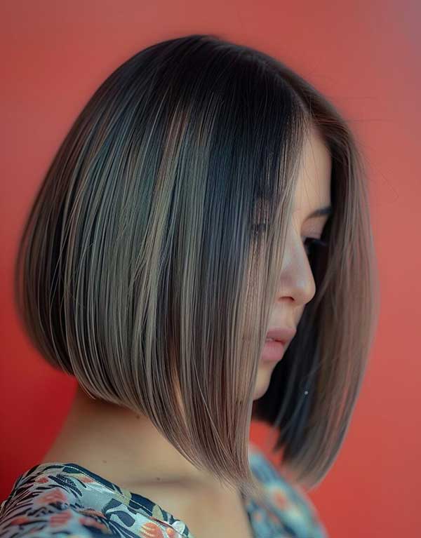 Asymmetrical bob haircut is a bold, modern style featuring one side longer than the other, creating an eye-catching, edgy silhouette. This cut adds dimension and a unique flair to classic bob shapes, flattering various face shapes and hair textures. Perfect for those wanting a statement look, the asymmetrical bob combines sophistication with a daring, fashion-forward edge.