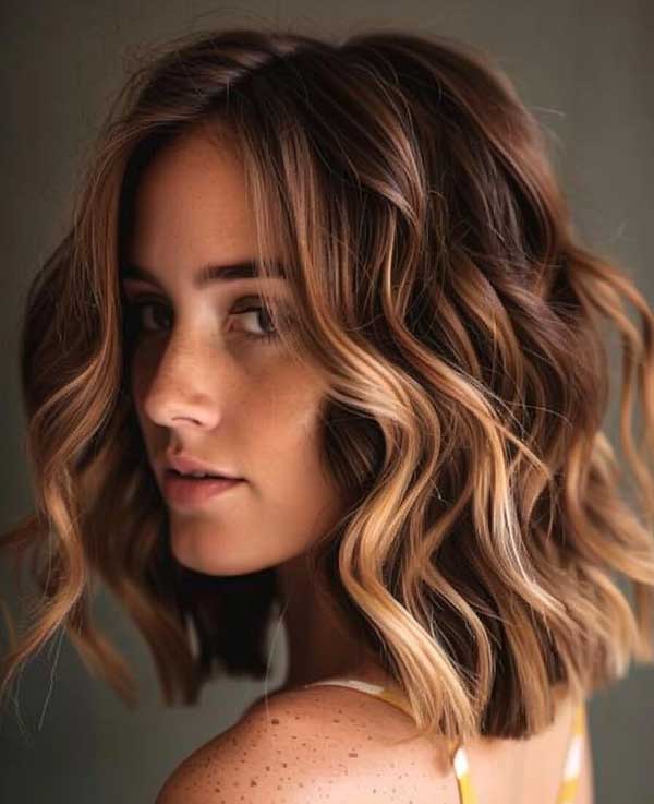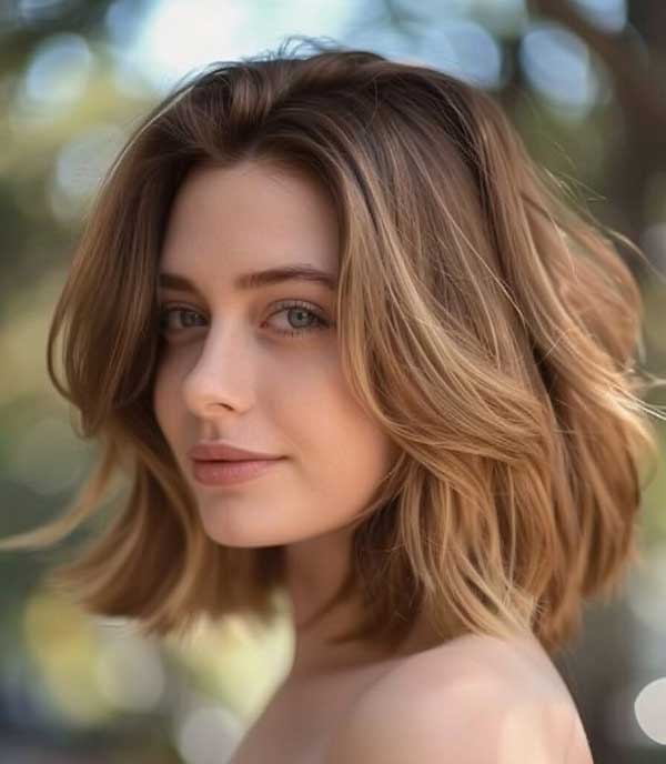 Wavy bob haircut blends softness and style, offering a breezy, effortless look that works on nearly all face shapes. With its natural texture and movement, this cut adds volume and dimension, especially to finer hair. It’s perfect for a laid-back yet chic vibe, easily styled with loose waves for that beachy, undone finish.