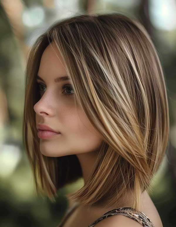 Long bob with sun-kissed highlights combines a classic lob with natural-looking, light-reflecting color. These warm, subtle highlights add depth and dimension, creating a radiant, glowing effect. Perfect for adding brightness and texture, this style suits all hair types and enhances the haircut’s movement, giving a fresh, beachy vibe that’s effortlessly stylish.