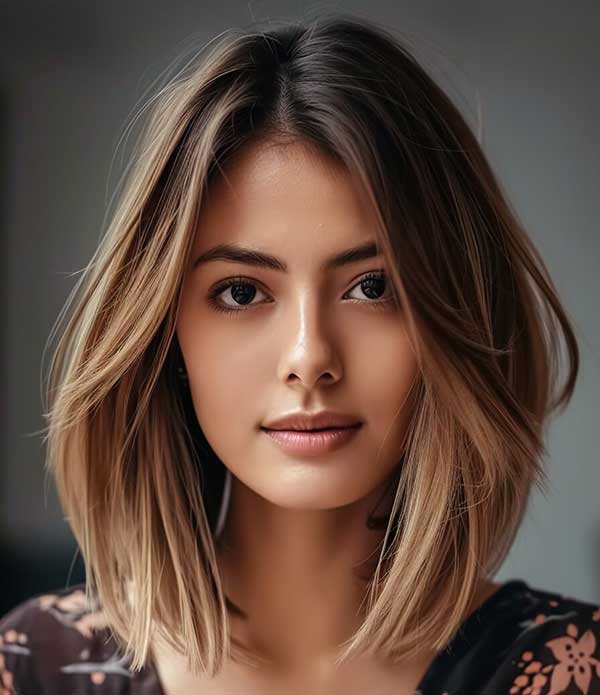 Lob with blonde balayage combines a classic long bob with sun-kissed, hand-painted highlights for natural dimension and brightness. This low-maintenance color technique adds depth and texture, enhancing the hair’s movement. Perfect for a fresh, modern look, it suits all hair types and adds a radiant, effortless glow.