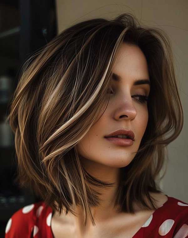 Long bob haircut with highlights combines a classic lob with subtle or bold color accents to add depth and dimension. Highlights enhance texture and movement, giving the hair a sun-kissed, vibrant look. It’s perfect for those seeking a stylish, low-maintenance way to brighten and update their hairstyle.