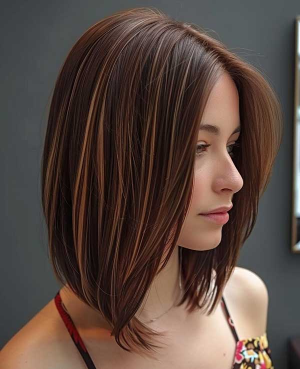 Long bob with stacked layers showcases shorter layers at the back that gradually lengthen toward the front, adding volume and dimension. This style enhances fullness, especially for fine or thin hair, while keeping the lob’s clean, modern shape. It’s a versatile and trendy cut that combines movement with a polished, fresh look.
