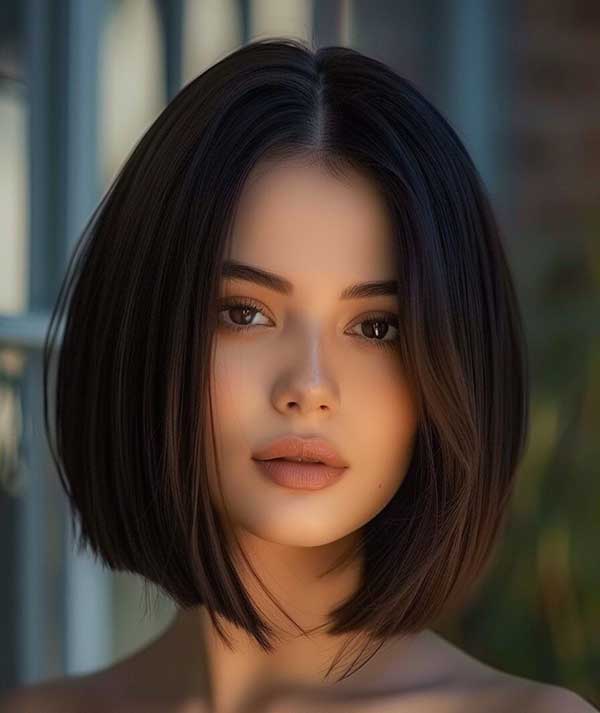 Inverted lob haircut features a longer front with a shorter, stacked back, creating a stylish angled silhouette. This cut adds volume and lift at the crown while framing the face beautifully. Perfect for fine or thin hair, the inverted lob offers a modern, edgy look with natural movement. Its versatile shape suits various hair textures and face shapes, making it a trendy, flattering choice for a fresh, polished style.