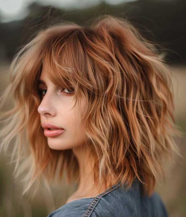 Shaggy bob haircut is a textured, layered style that adds volume and a carefree, edgy vibe. With choppy ends and uneven layers, it creates a tousled, effortless look perfect for straight or wavy hair. This cut embraces natural movement and is ideal for those wanting a trendy, low-maintenance hairstyle with lots of personality and attitude.