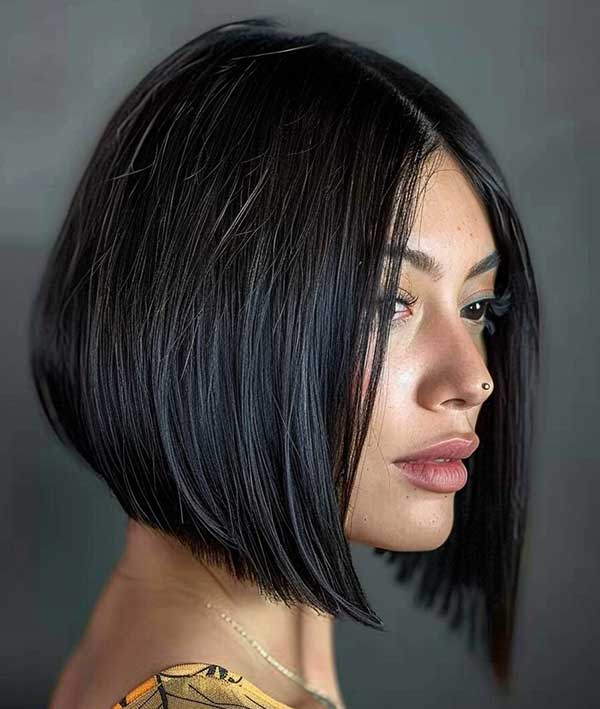 Graduated bob haircut is characterized by stacked layers at the back that gradually lengthen toward the front, creating a sleek, angled shape. This style adds volume and body, especially for fine or thin hair, while beautifully framing the face. With its clean lines and dynamic movement, the graduated bob offers a contemporary and polished look.